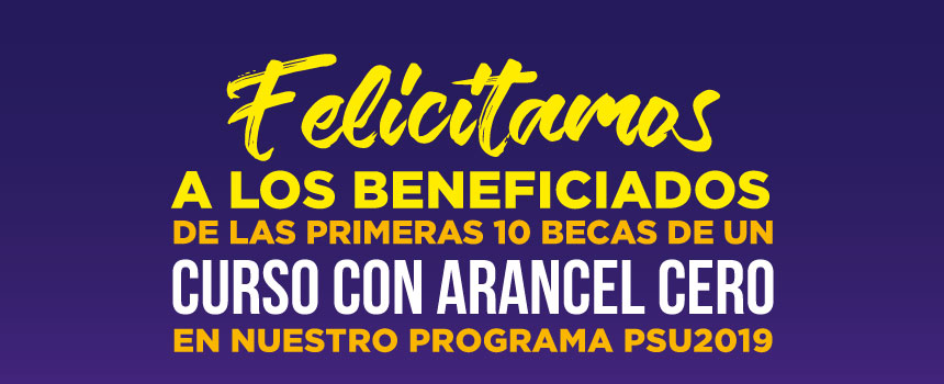 Felicitamos de los beneficiados de las primeras 10 becas de un curso con arancel cero en nuestro programa PSU2019.